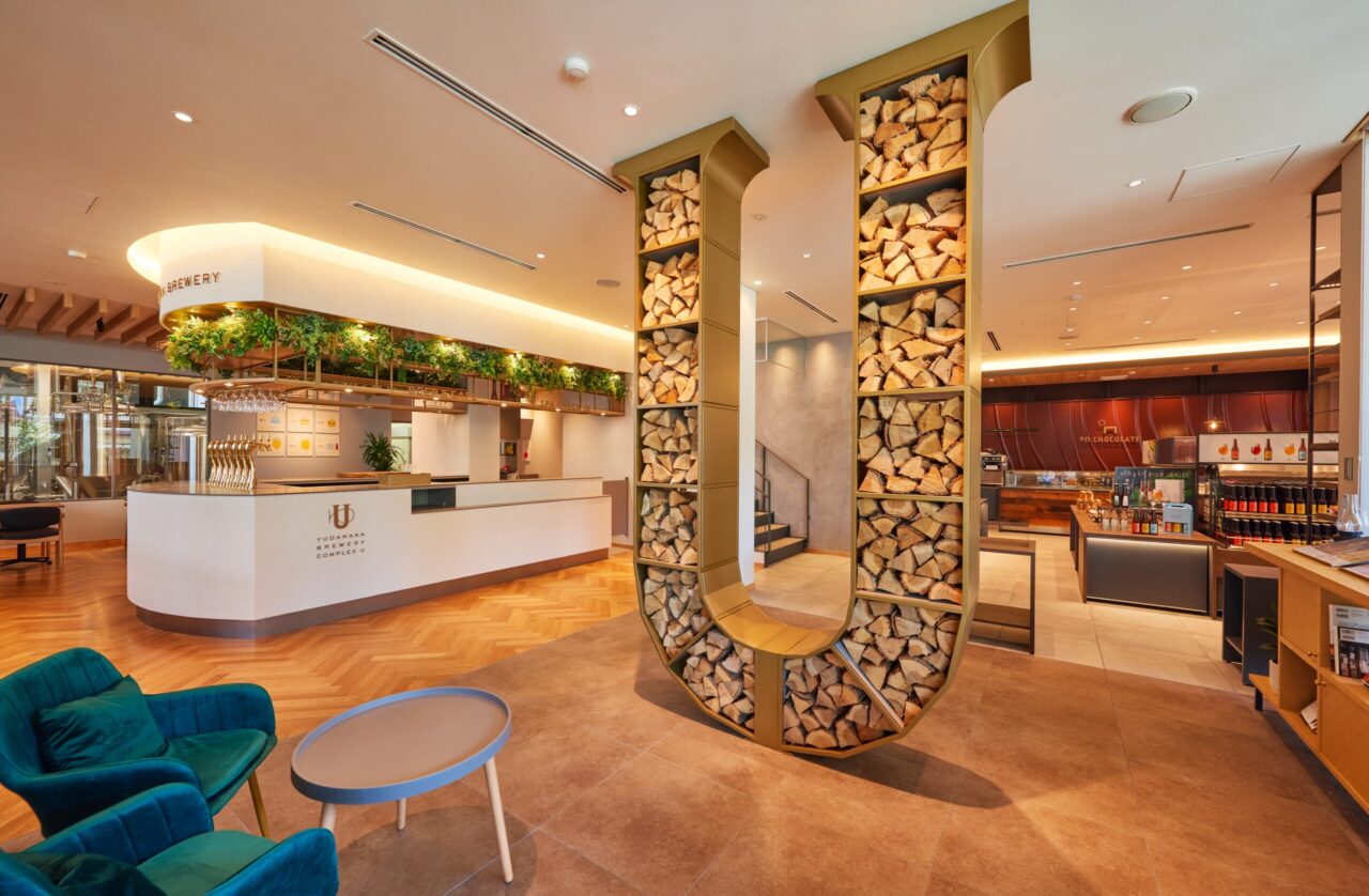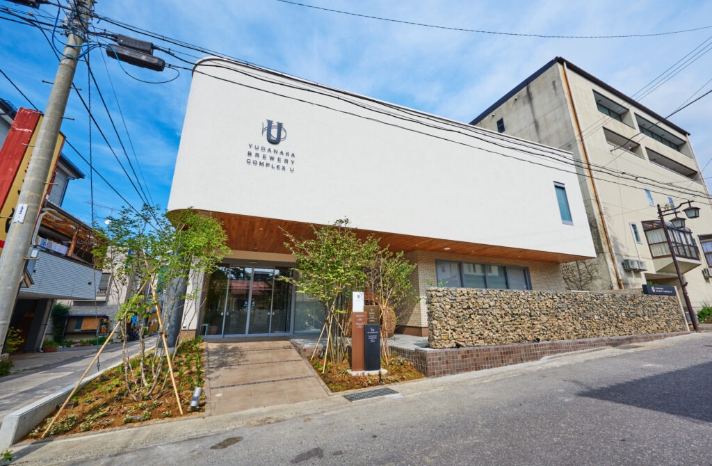 湯田中駅から徒歩7分。クラフトビール醸造所を併設し、タンクを眺めながら食事が楽しめるレストラン、専属パティシエによるスイーツ、貸切温泉・サウナ付き客室、セレクトショップを備えた複合施設です。